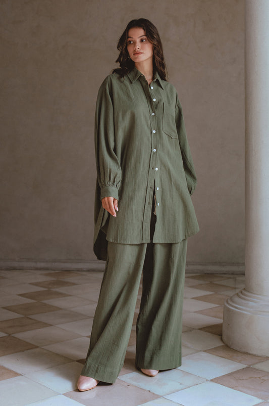 Calin Long Sleeve Oversized Shirt - Sage