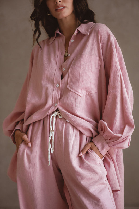 Calin Long Sleeve Oversized Shirt - Rose