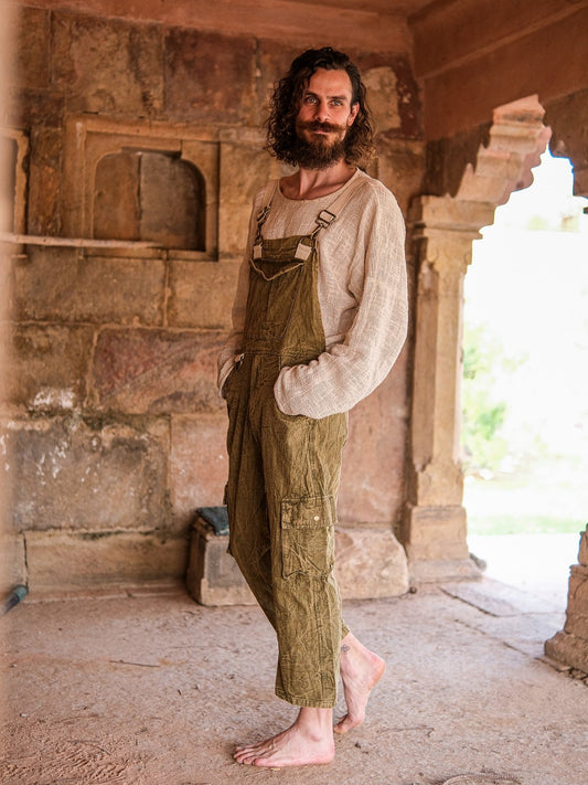 Cowboy Dungaree Jumpsuit - Khaki